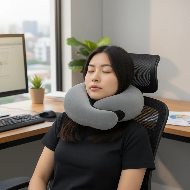 Sa forme ergonomique maintient la tête sans forcer le cou ni bloquer les épaules. Il a été pensé pour un usage quotidien et non seulement pour les voyages. Léger, élégant et durable, il offre un confort réel plutôt qu’un simple effet “mou”.