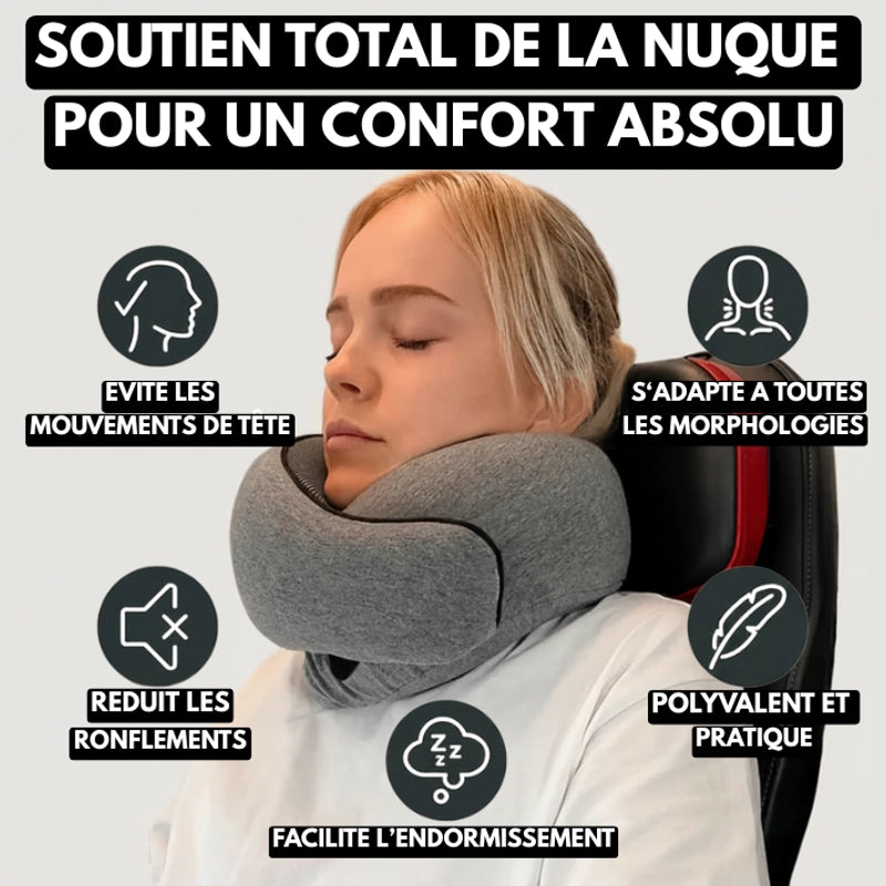 Oui. Sa mousse à mémoire de forme épouse parfaitement la nuque et répartit la pression pour éviter les points de tension. Même après plusieurs heures en avion, au bureau ou en voiture, la posture reste stable et les muscles détendus. Les utilisateurs rapportent une nette réduction des douleurs cervicales dès la première utilisation.